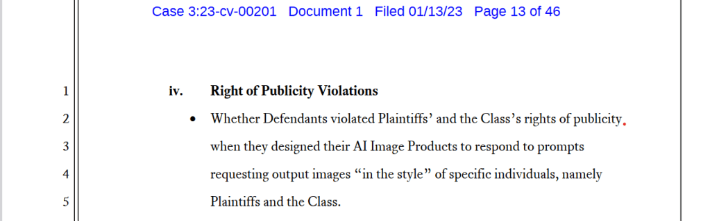 You can read more about the litigation here; https://www.theverge.com/2023/1/16/23557098/generative-ai-art-copyright-legal-lawsuit-stable-diffusion-midjourney-deviantart